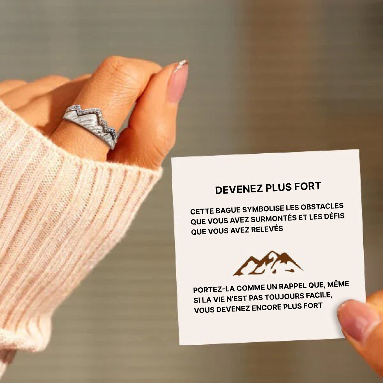 Cette bague évoque les obstacles traversés et les défis relevés. Elle peut être portée comme un rappel du chemin parcouru, même lorsque la vie présente des épreuves.