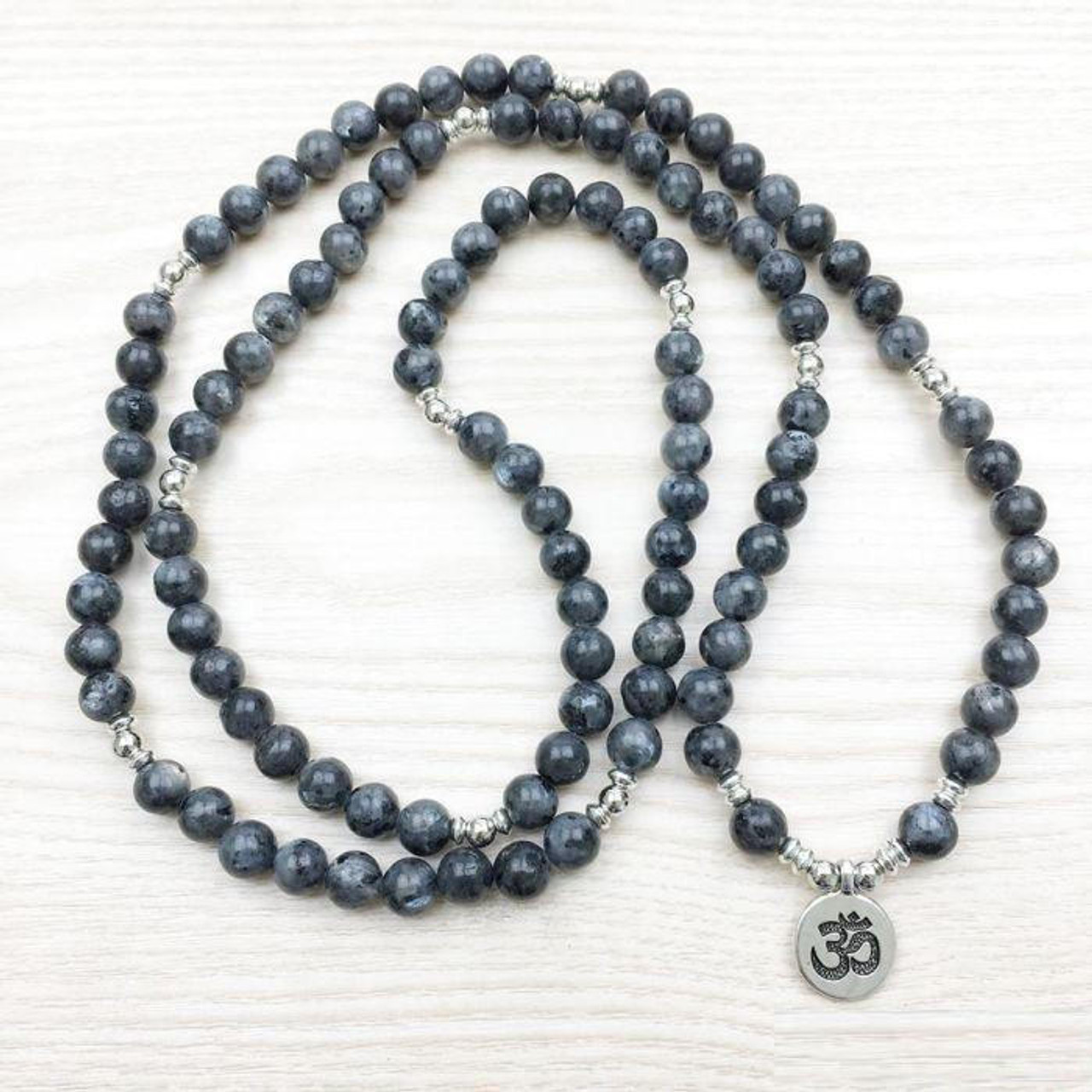 Bracelet Mala "Om" de 108 perles en Labradorite Grise Naturelle