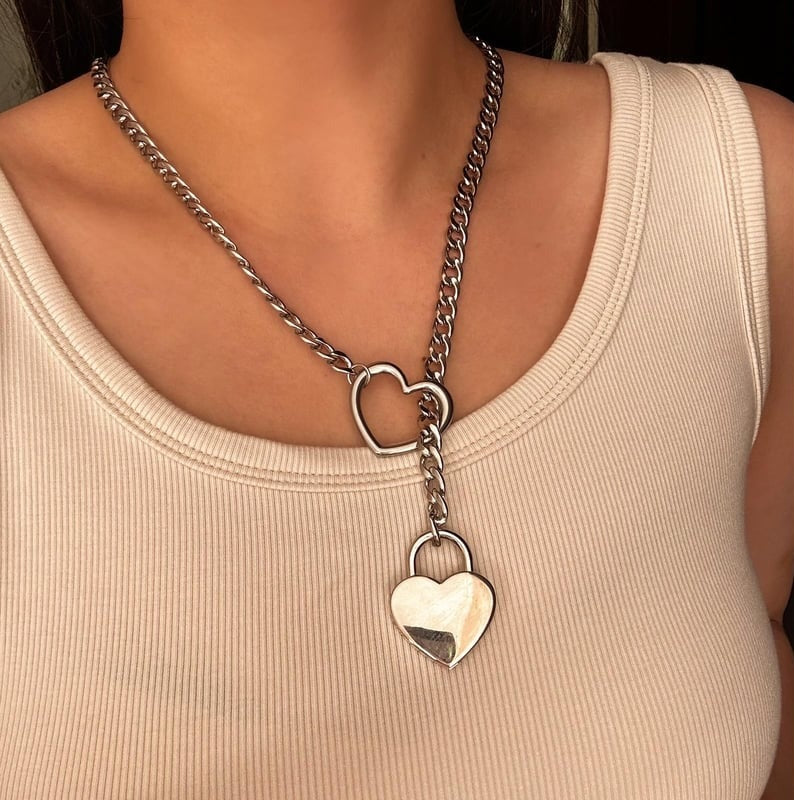 Collier à chaîne coulissante avec cadenas en forme de c'ur