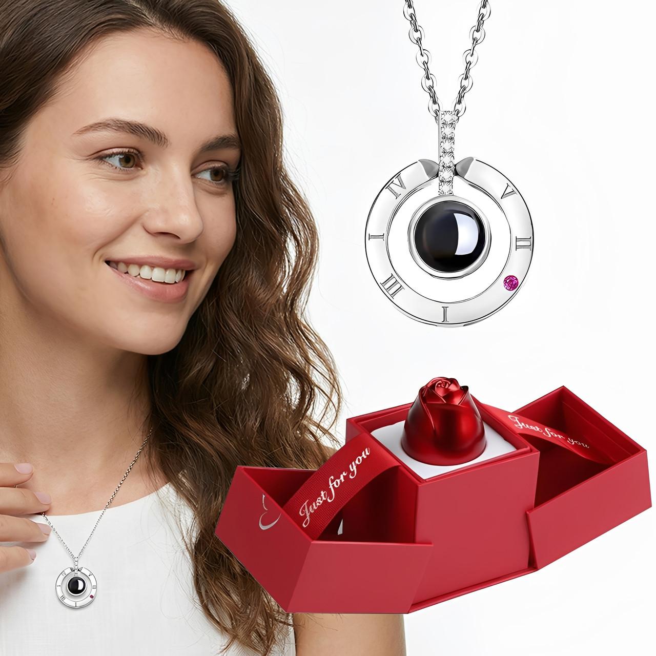 Coffret Rose Éternelle Avec Collier Je t'Aime en 100 Langues zaxx