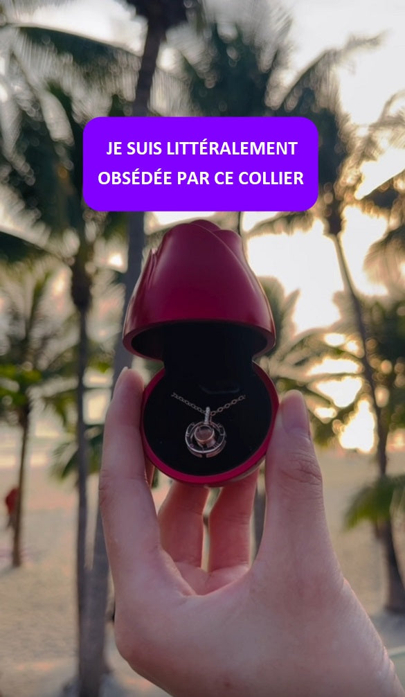 L'éclat raffiné de la rose, associé au message symbolique du collier, participe à la création d'un souvenir chargé d'émotion, à conserver au fil du temps.