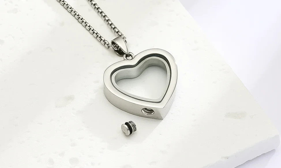 Le Collier Pendentif Urne en forme de c'ur est conçu pour contenir une petite portion de cendres d'un être cher. Il s'inscrit comme un objet symbolique, permettant d'évoquer sa mémoire près de vous, tout en proposant une manière élégante et personnelle de lui rendre hommage.
